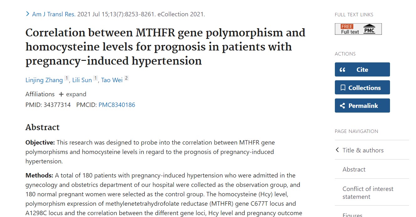 अमेरिकन जर्नल ऑफ़ ट्रांसलेशनल में 2021 का एक पेपर अनुसंधान ने सटीक रूप से पता लगाया कि एमटीएचएफआर 677टीटी किस प्रकार गर्भावधि की ओर मापता है उच्च रक्तचाप (जीएच)।