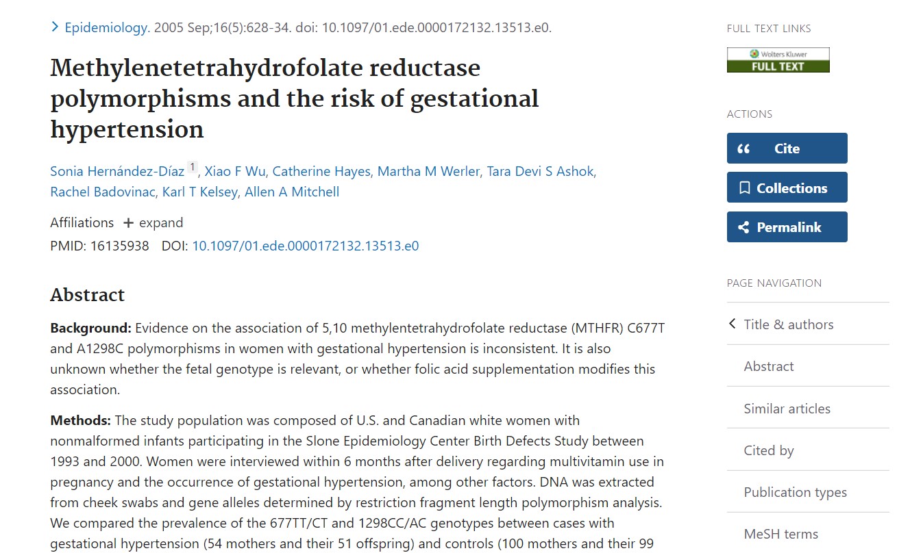 हेस सी, एट अल।मिथाइलनेटेट्राहाइड्रोफोलेट रिडक्टेस पॉलिमॉर्फिज्म और