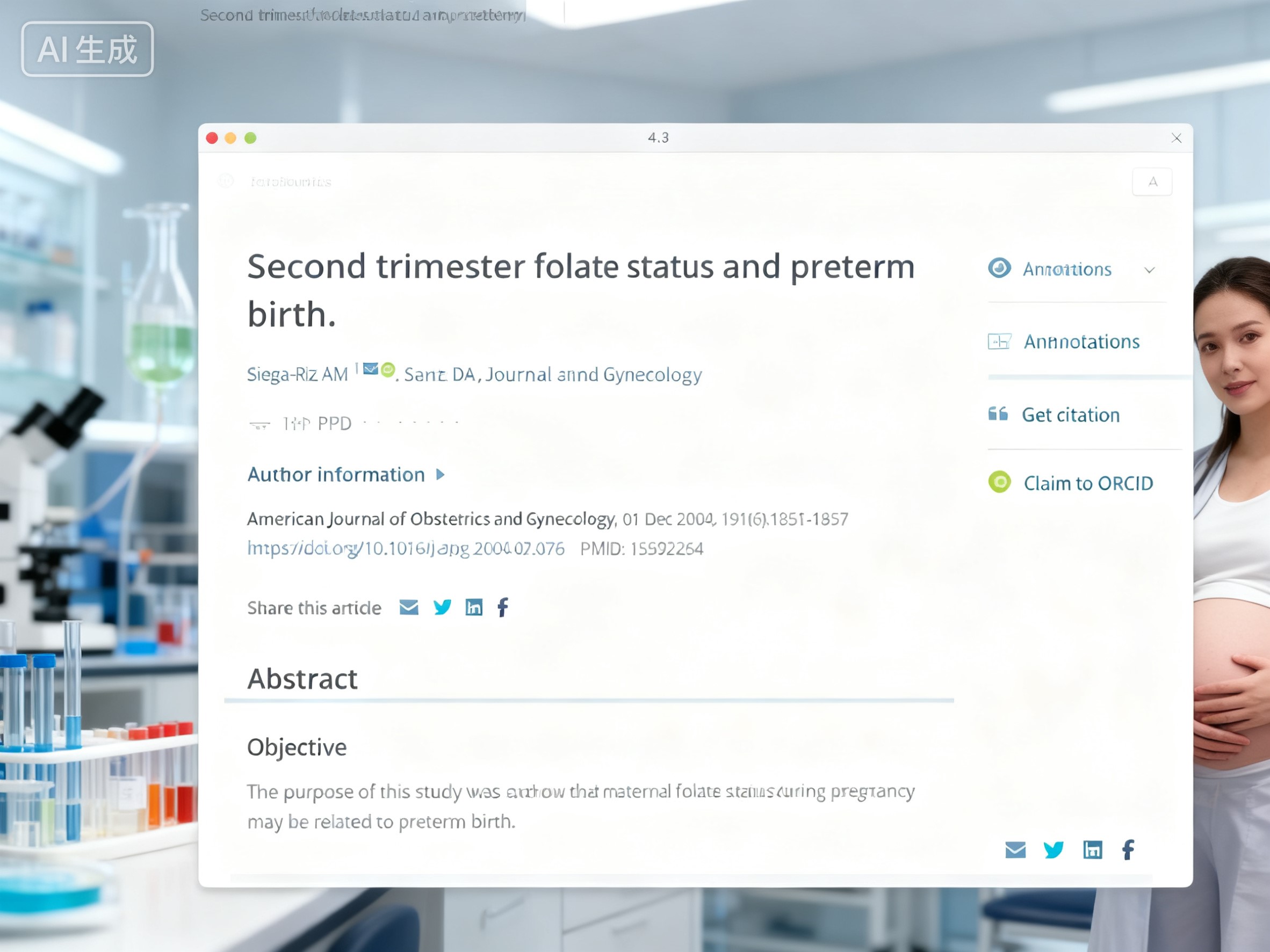 में प्रकाशित एक ऐतिहासिक अध्ययनअमेरिकन जर्नल ऑफ ऑब्स्टेट्रिक्स और स्त्री रोग (एजेओजी)2004 में स्पष्ट उत्तर दिया गया:अपर्याप्त फोलेट दूसरी तिमाही के दौरान स्तर समय से पहले जन्म के जोखिम को बढ़ा सकता है लगभग 80%।