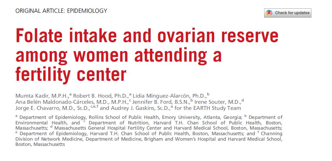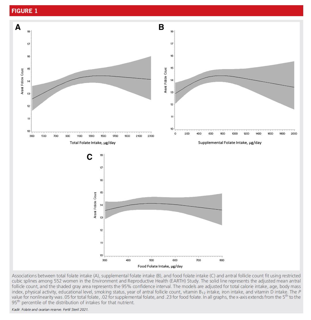 इस अध्ययन में वहां आने वाली 552 महिलाओं के डेटा का विश्लेषण किया गया संयुक्त राज्य अमेरिका में मैसाचुसेट्स जनरल हॉस्पिटल फर्टिलिटी सेंटर, ध्यान केंद्रित कर रहा है फोलिक एसिड सेवन और डिम्बग्रंथि रिजर्व फ़ंक्शन के बीच संबंध पर (एंट्रल फॉलिकल काउंट, एएफसी द्वारा मापा गया)।