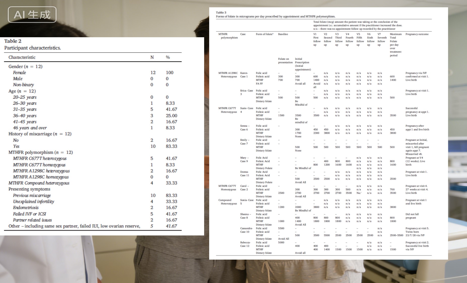अध्ययन में 12 मरीज़ों को शामिल किया गया, जिनमें से 83.3% का गर्भपात का इतिहास था और 41.7% ने असफल प्रजनन चक्र का अनुभव किया था। सभी थे एमटीएचएफआर जीन बहुरूपता का निदान (आमतौर पर सी677टी विषमयुग्मजी, यौगिक विषमयुग्मजी, आदि)। इन महिलाओं के लिए हर गर्भावस्था परीक्षण नकारात्मक होता है यह महज़ एक संख्या से कहीं अधिक था—यह भावनात्मक और शारीरिक थकावट का प्रतिनिधित्व करता था। वास्तव में उपयुक्त पोषण योजना ढूँढना अत्यावश्यक हो गया।