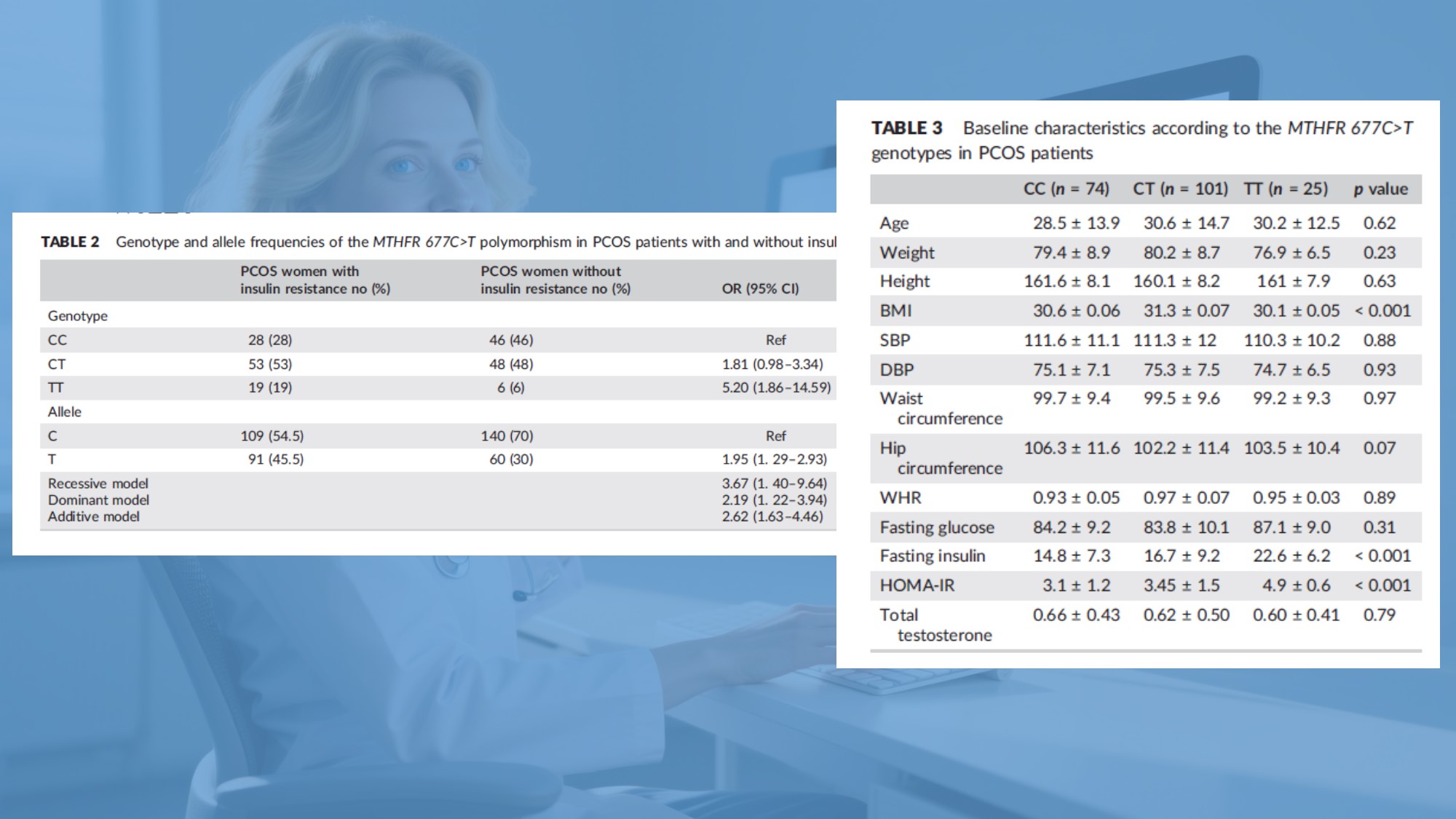 टीम ने *MTHFR* जेनेटिक को शामिल करने की सिफारिश की पीसीओएस के लिए प्रारंभिक चयापचय जोखिम मूल्यांकन में परीक्षण, यह सुझाव देता है कि जल्दी फोलेट चयापचय असामान्यताओं में हस्तक्षेप से मधुमेह को रोकने में मदद मिल सकती है।इससे आम तौर पर नज़रअंदाज़ किए गए एक अंध बिंदु का पता चलता है: व्यक्तियों में भिन्नता होती है फोलेट को चयापचय करने की उनकी क्षमता। कुछ, कम एंजाइम गतिविधि के कारण नहीं कर सकते इसे प्रभावी ढंग से परिवर्तित करें; फोलेट बिना अस्तित्व के केवल रक्त में घूमता रहता है प्रयोग किया गया। पीसीओएस वाली महिलाओं के लिए जो **टीटी** या **सीटी** जीनोटाइप हैं, पारंपरिक का उपयोग कर रही हैं सिंथेटिक **फोलिक एसिड** खराब परिणाम दे सकता है - उपयोग योग्य फोलेट बढ़ाने में विफल स्तर और संभवतः चयापचय तनाव जोड़ना।---