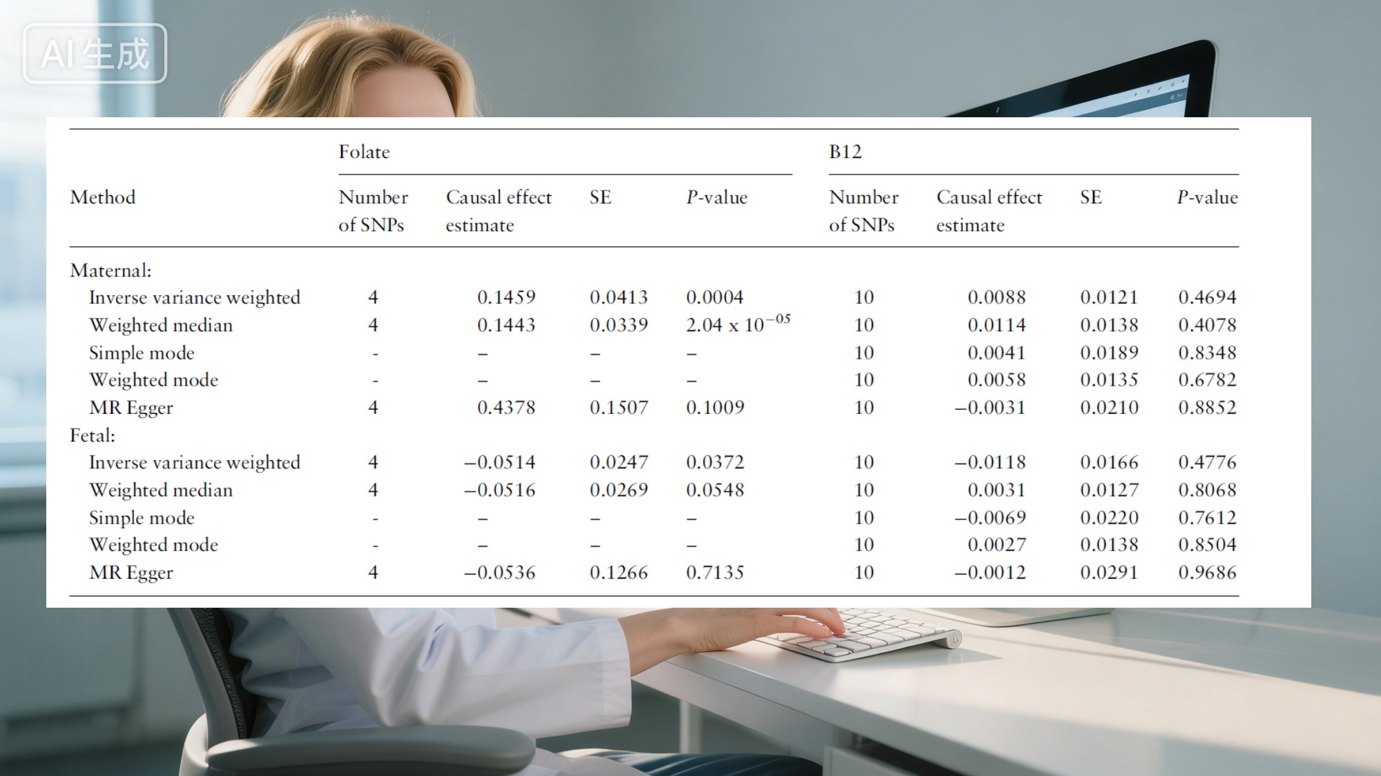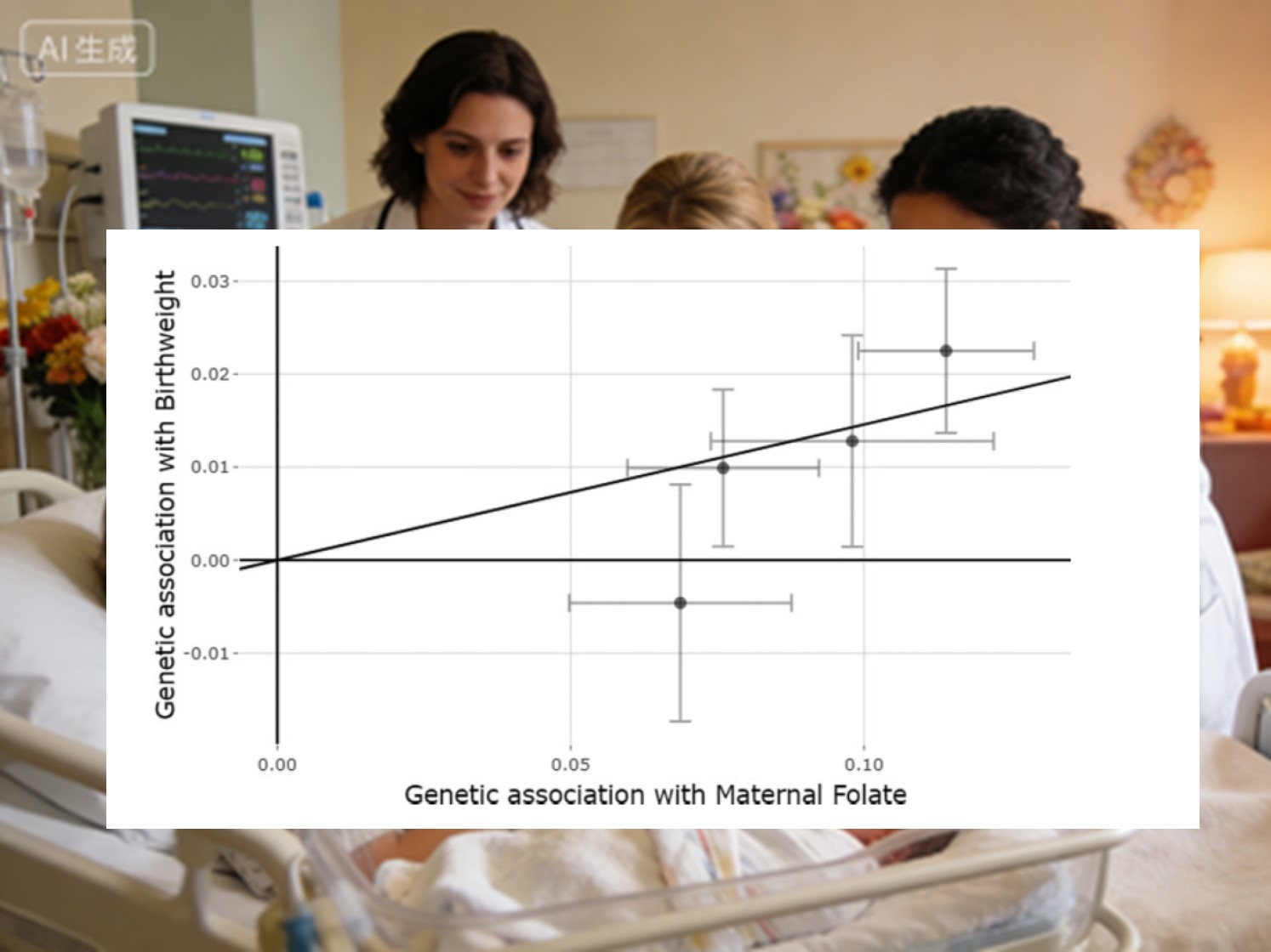 के लिएफोलेट, सबूत स्पष्ट था: उच्चतर मातृ फोलेट का स्तर शिशुओं को अधिक वजन बढ़ाने में मदद करता है। औसतन, प्रत्येक एक-मानक-विचलन फोलेट में वृद्धि जन्म के समय अतिरिक्त ~71 ग्राम वजन के अनुरूप होती है। यह प्रवृत्ति विभिन्न विश्लेषणात्मक तरीकों के अनुरूप बनी रही पहले की नैदानिक टिप्पणियाँ और अब आनुवंशिक स्तर के डेटा द्वारा प्रबलित। फोलेट, यह पता चला है, नवजात शिशुओं को एक मजबूत शुरुआत देने में इसका महत्वपूर्ण योगदान है जीवन.