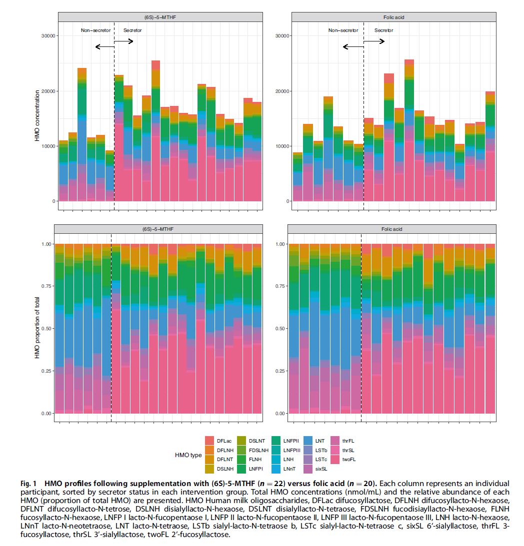 जबकि यह ज्ञात हो चुका है कि HMO रचना है आनुवंशिकी और मातृ जैसे कुछ परिवर्तनीय कारकों से प्रभावित पोषण, फोलेट अनुपूरण का विशिष्ट प्रभाव अस्पष्ट रहा - जब तक अभी.