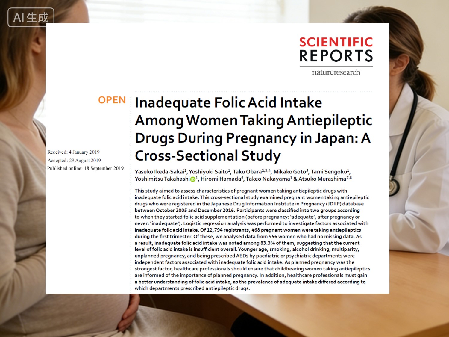 में एक जापानी क्रॉस-सेक्शनल अध्ययन प्रकाशित हुआवैज्ञानिक रिपोर्ट(नेचर पोर्टफोलियो, 2019) ने एईडी लेने वाली 456 गर्भवती महिलाओं का सर्वेक्षण किया: